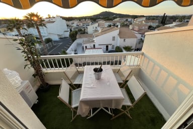 Situé dans le Village Naturiste du Cap d'Agde, au cœur du Village, au sein de la Résidence Port Soleil, à proximité des commerces et des animations. La terrasse, exposée au soleil, offre un magnifique coucher de soleil avec vue panoramique sur la piscine, sur le Mont Saint- Loup et les alentours. Parking sécurisé inclus. Idéal 3/4 personnes.