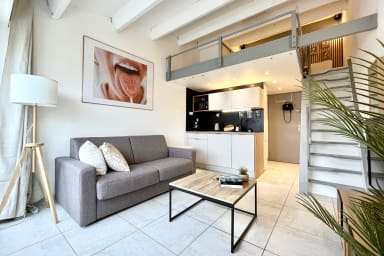 Grâce à son lit double en mezzanine et son canapé-lit tout neuf, ce studio est aussi bien adapté pour deux, trois ou quatre voyageurs.